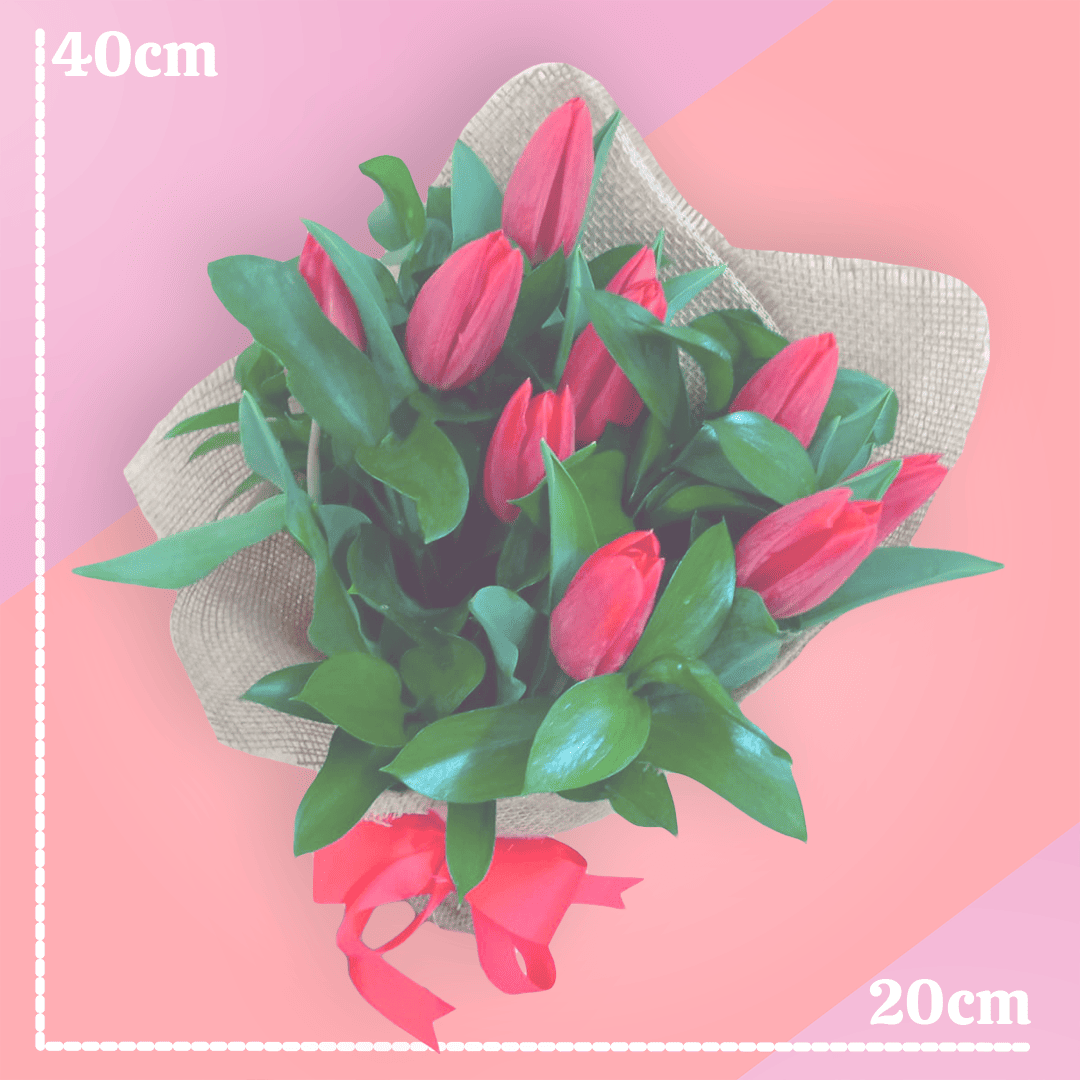 Ramo de 10 tulipanes rojos que expresa amor profundo y romanticismo, es ideal para sorprender a tu pareja en su aniversario porque evoca amor duradero.